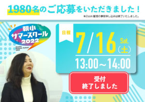 関係者の皆さま 朝小サマースクール、玉井登壇について周知のご協力、誠にありがとうございました! 皆さまのおかげで、1980名のお申込みを頂きました! 玉井もますます張り切っております。どうぞご期待ください! […]