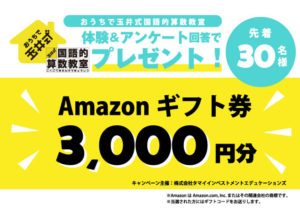 【おうちで玉井式 国語的算数教室】 体験&アンケートで先着30名様に3000円分のAmazonギフト券プレゼント! 今回のキャンペーンに込めた思い おうちで玉井式国語的算数教室®︎は、すでに多くの子どもたち […]