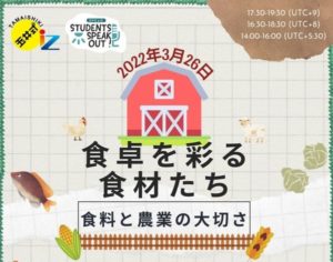 お待たせしました! 次回開催決定! 2022年3月26日(土)17時30分 ~ 19時30分(日本時間) 「Students Speak Out!# 7」 今回のテーマは「The Food in Our Plates: […]