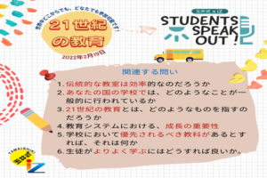 お待たせしました!次回開催決定! 2021年5月21日(金) 19時30分~21時30分(日本時間) 「Students Speak Out!3 」 テーマは、 “世界の軍事的脅威と私達が世界平和のためにできること” 随 […]