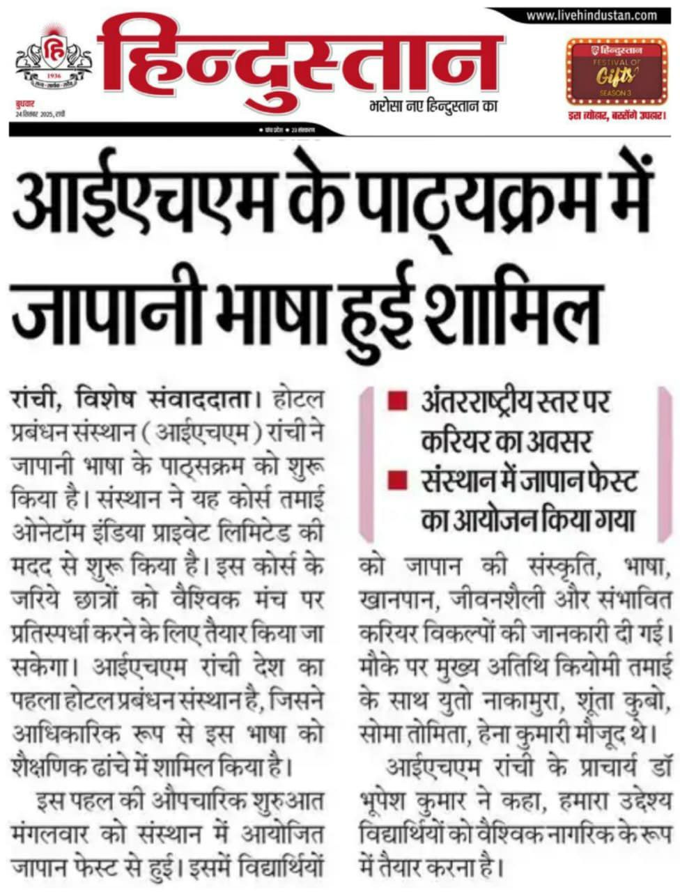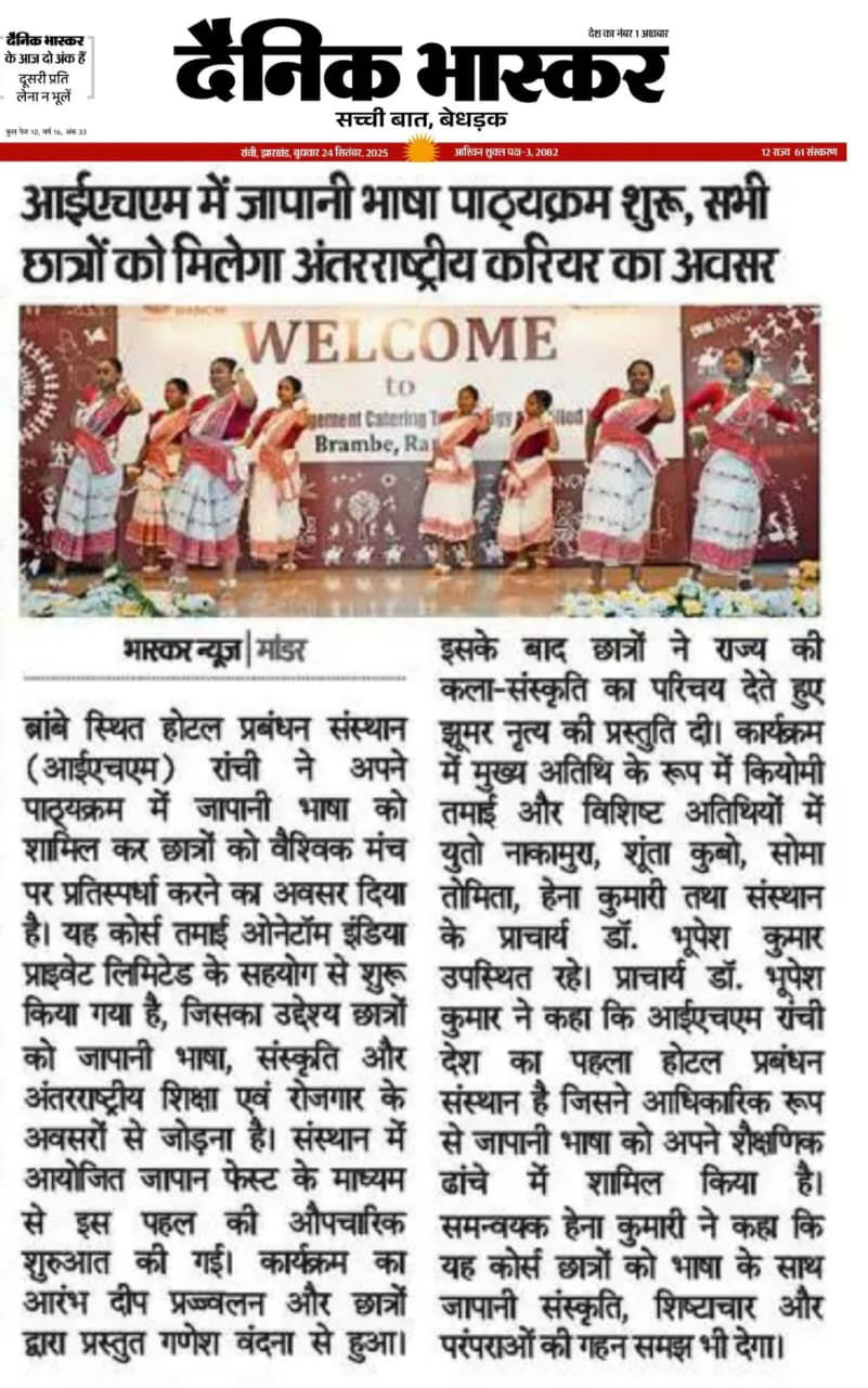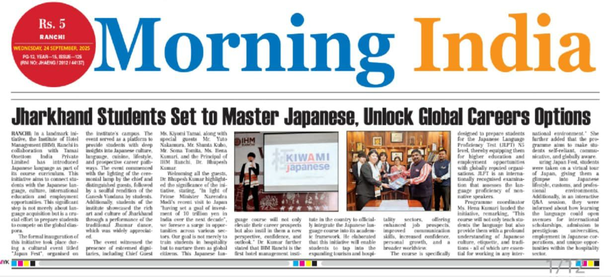 IHM,Ranchiにて日本語講座の開講が決定!
