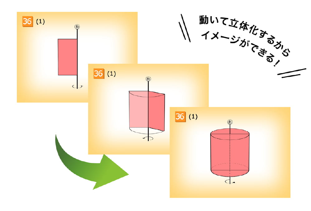 教科書では高学年になってから多く出てくる立体図形を「図形の極®」では低学年から扱います。低学年であっても、豊富なアニメーションを見ていく中でイメージが頭の中で再生できるようになっていくからです。