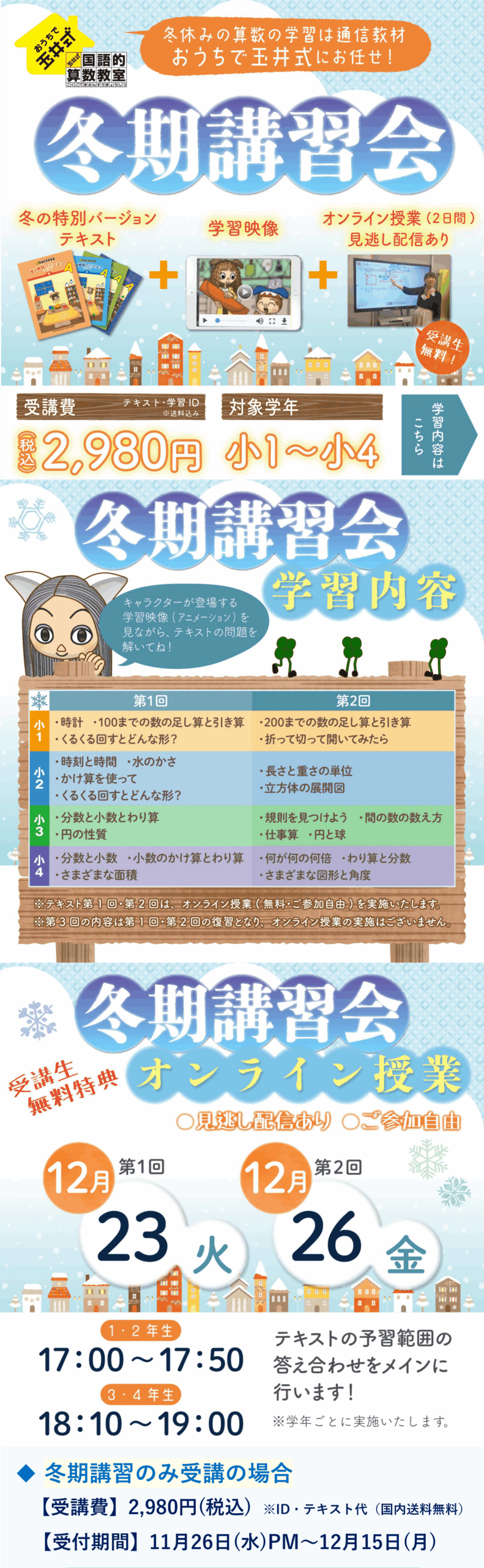 おうちで玉井式 国語的算数教室「冬期講習会」お申込み受付中!